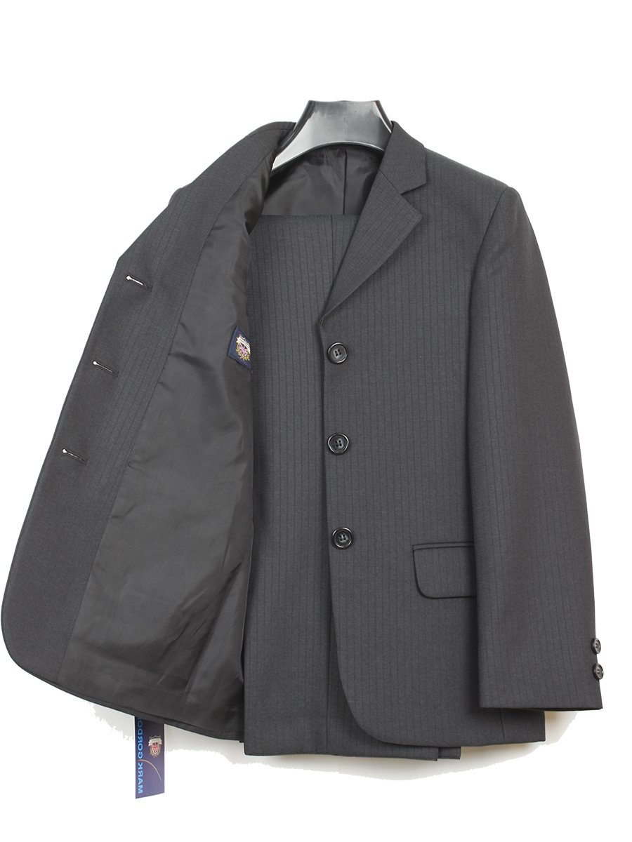 Описание: Костюм двойка школьный пиджак+брюки для мальчика темно-серый в серую полоску. Стиль классический.