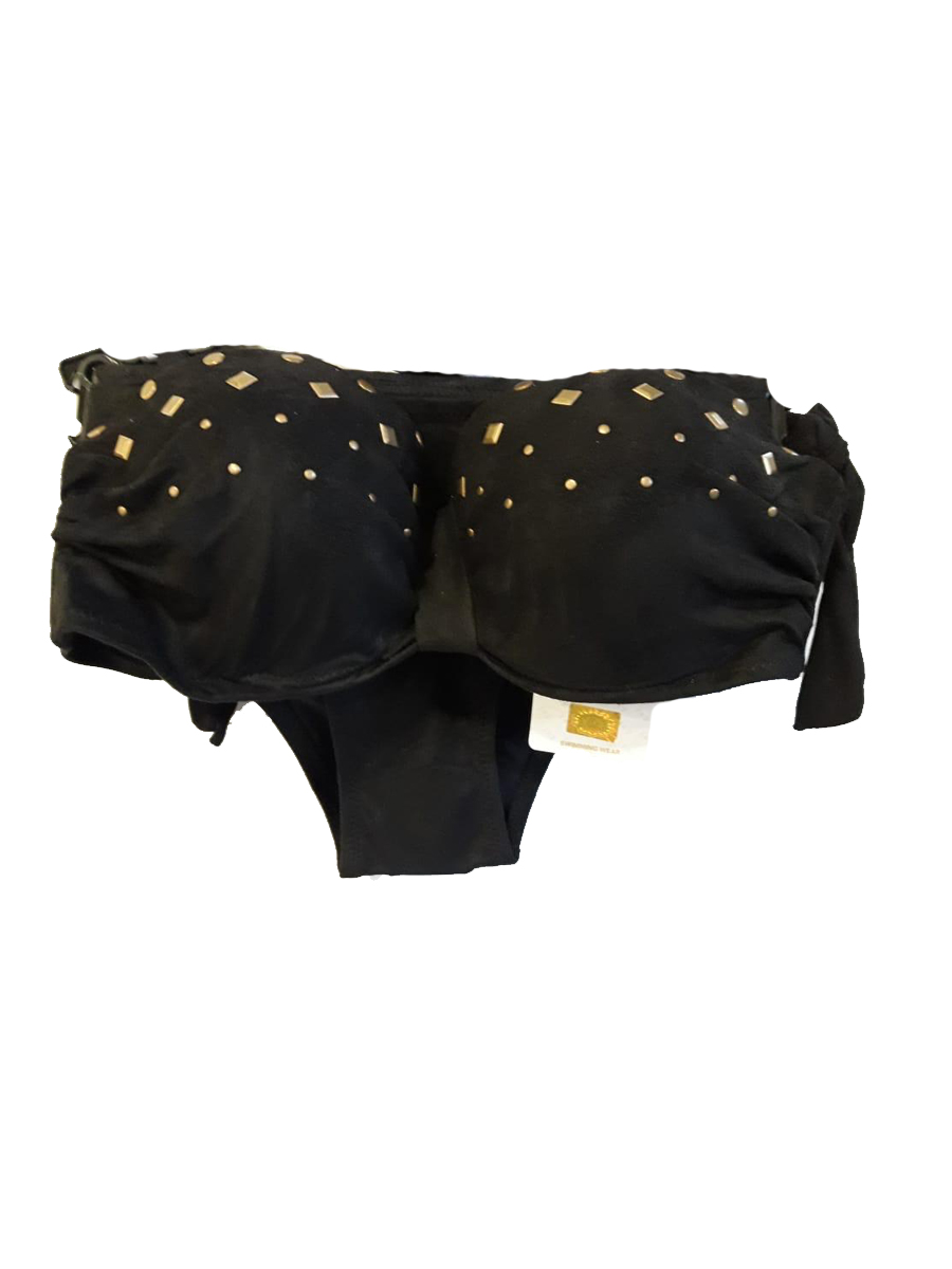 Купальник женский. Стиль современный. На завязках с чашками черный с позолоченными вставками