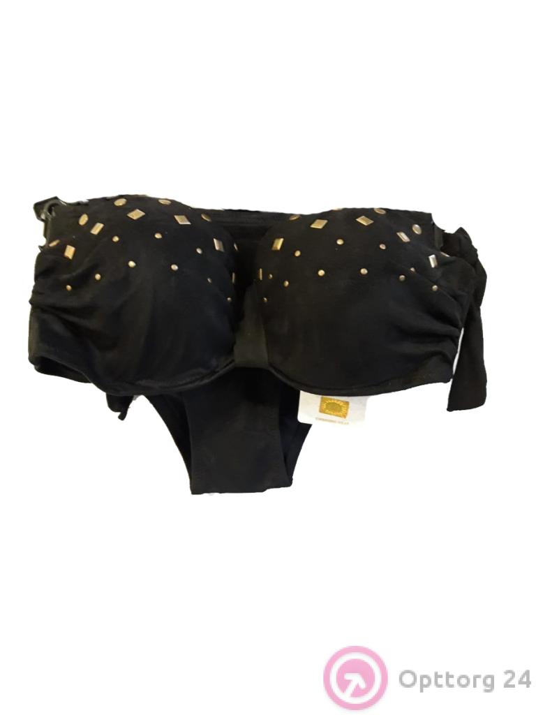 Купальник женский с чашками черный с позолоченными вставками оптом