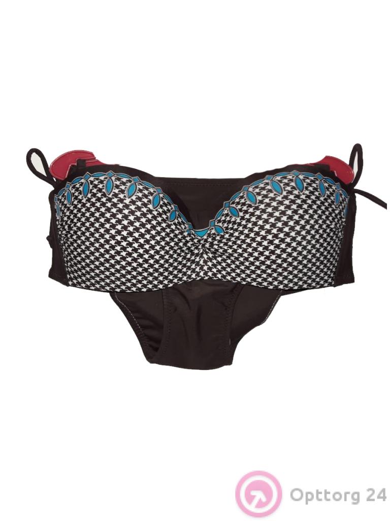Купальник женский с чашками черный с синими и белыми узорами оптом