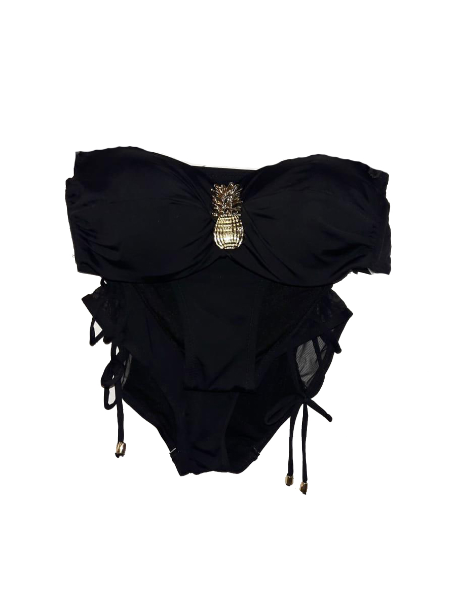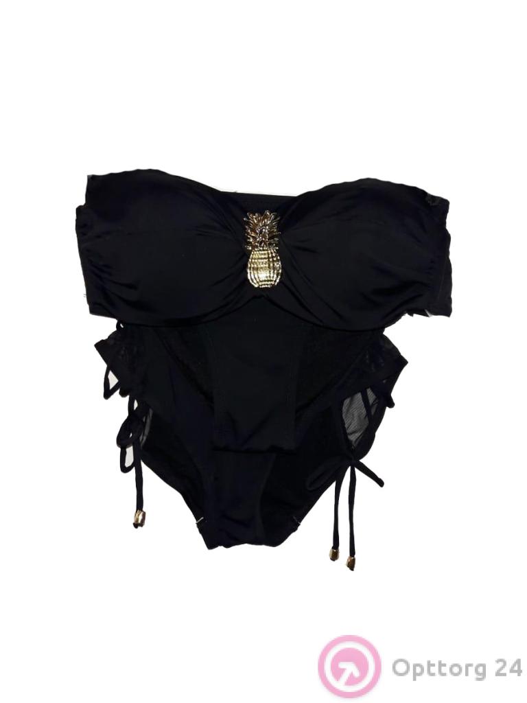 Купальник женский современного кроя. Раздельный. Форма чашками цвет черный с вставкой ананас