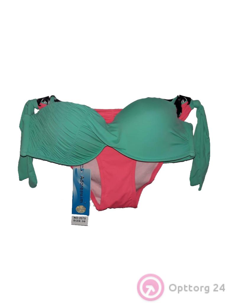 Купальник женский с чашками цвета фуксии и зеленого оптом