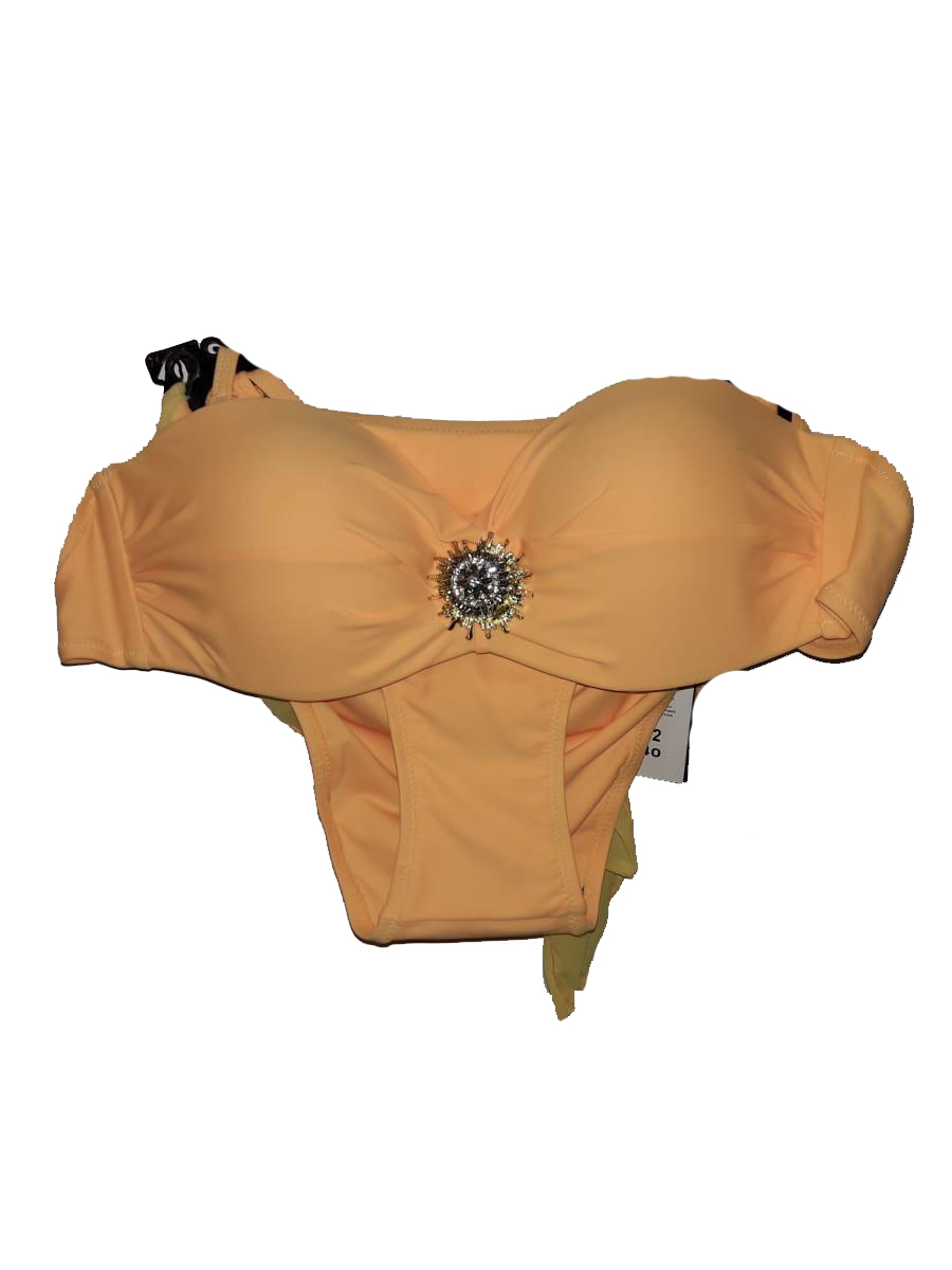 Купальник женский современного кроя. Раздельный. Форма чашками горчичного цвета с вставкой