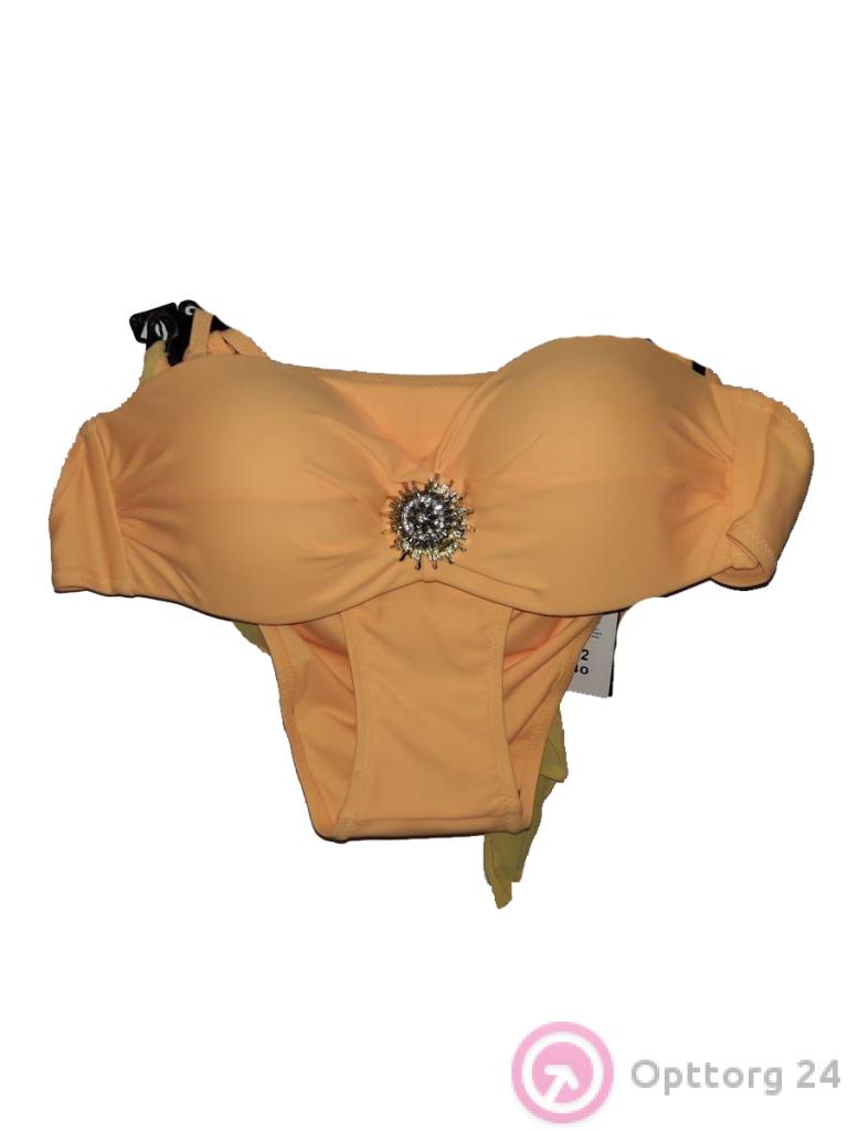 Купальник женский с чашками горчичного цвета с вставкой оптом