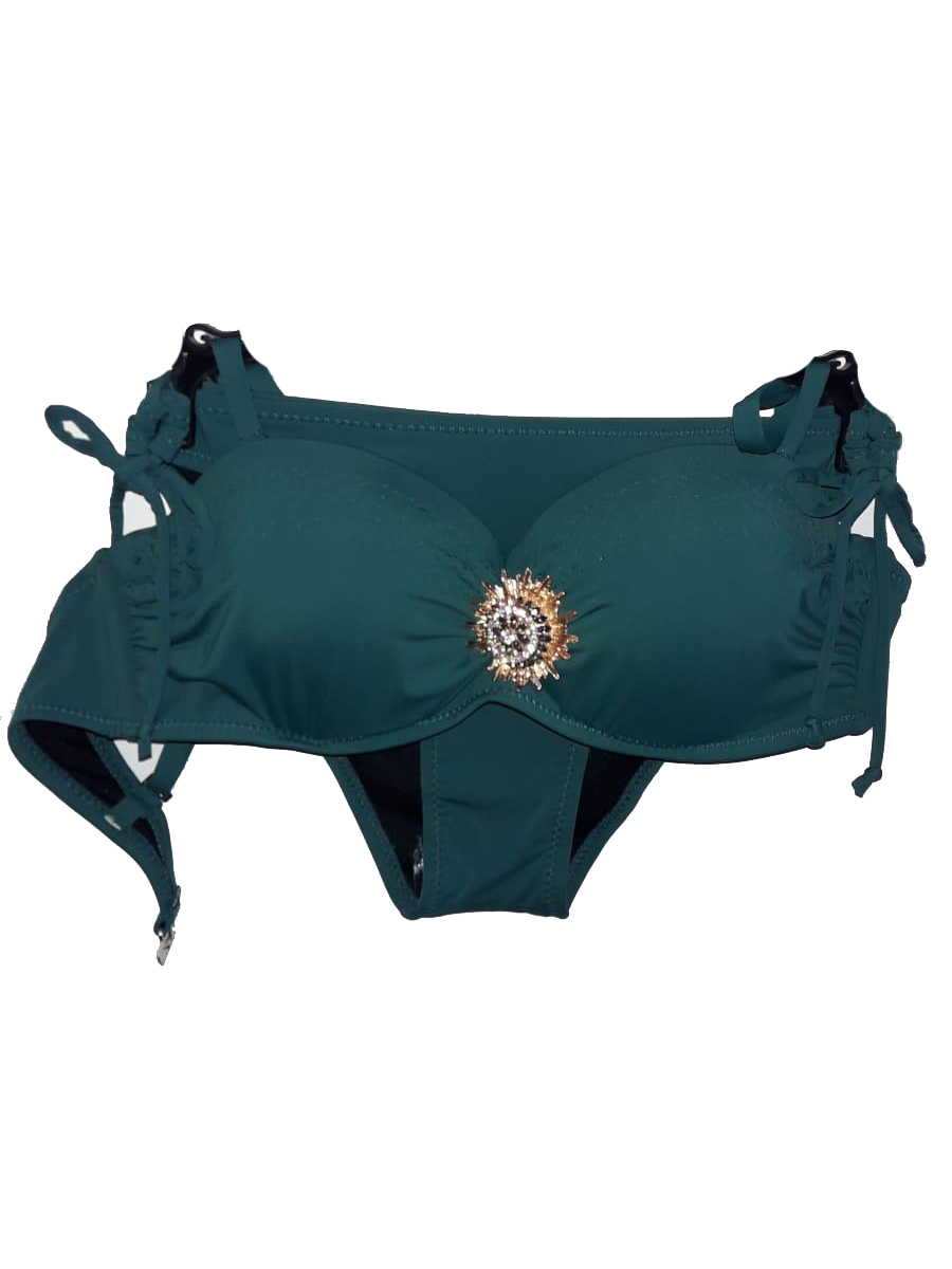 Купальник женский современного кроя. Раздельный. Форма чашками цвет изумрудный с красивой позолоченной вставкой