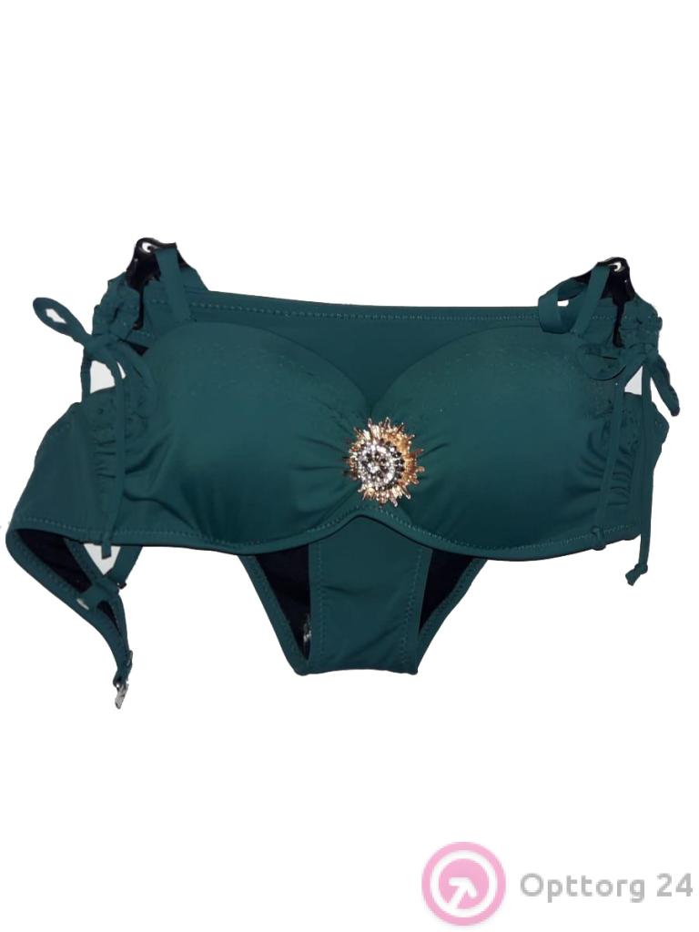 Купальник женский с чашками изумрудный с красивой позолоченной вставкой оптом
