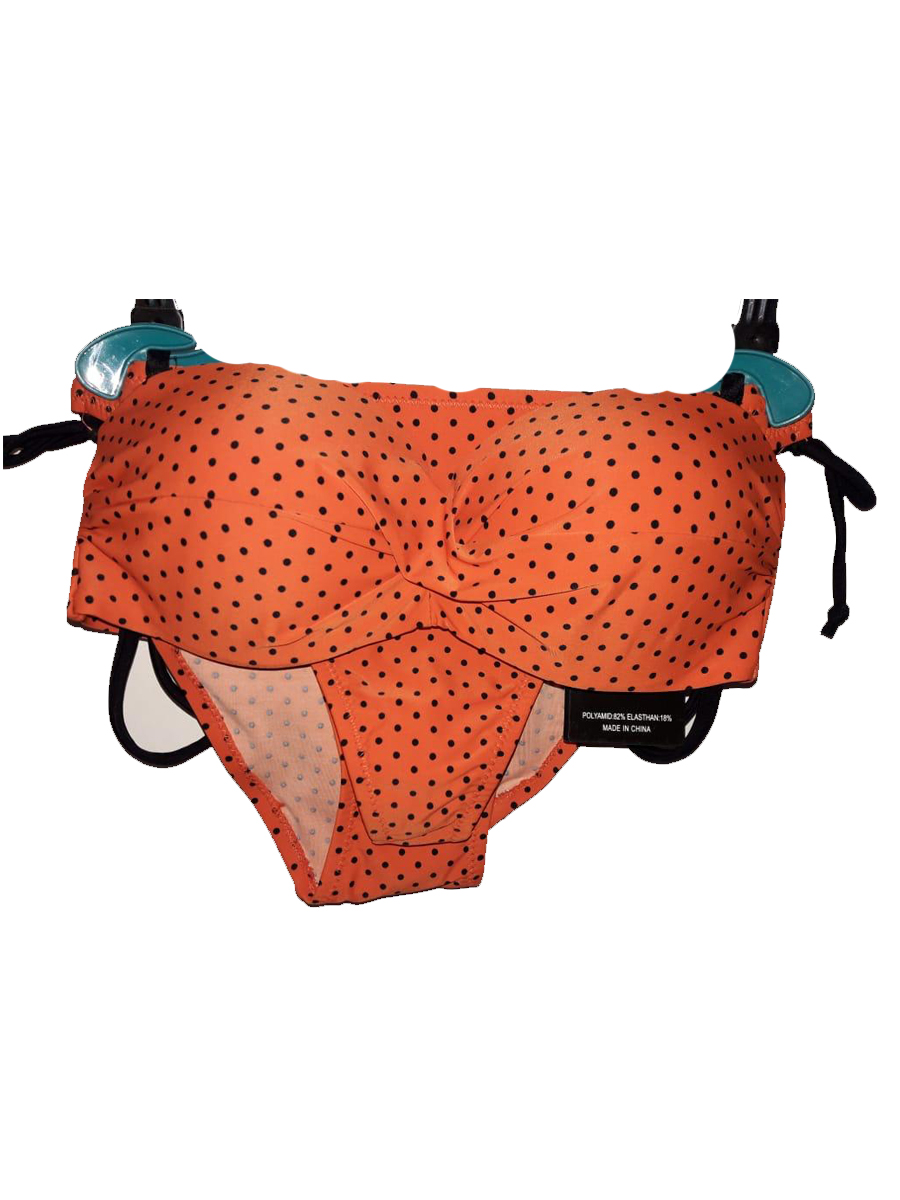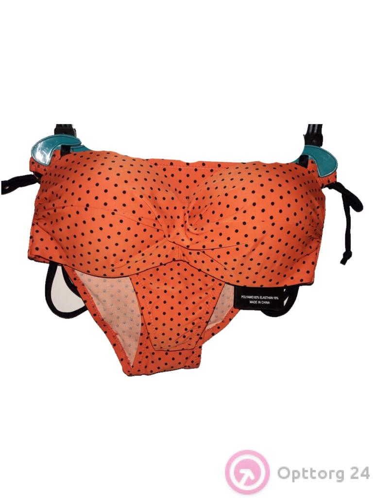 Купальник женский. Стиль современный. На завязках с чашками оранжевый в горошек.