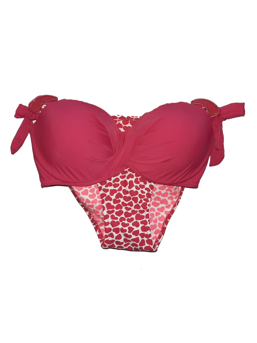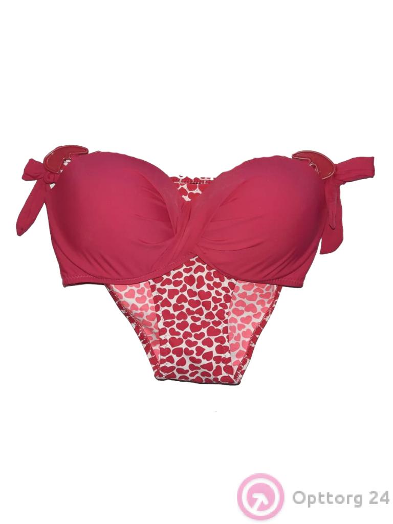 Купальник женский. Стиль современный. На завязках с чашками розовый с сердечками