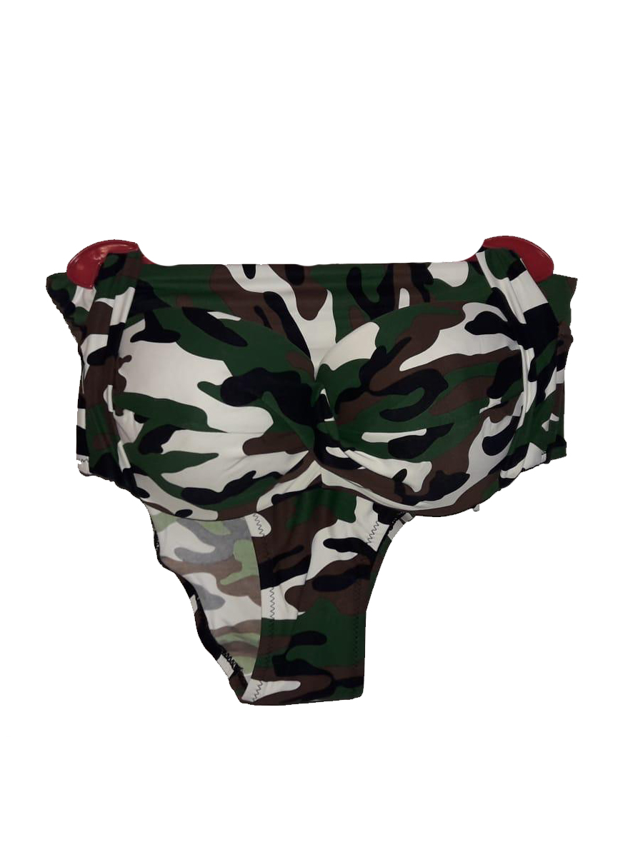 Купальник женский. Стиль современный. На завязках с чашками с камуфляжным принтом