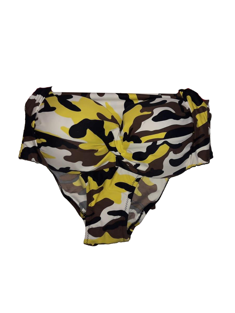 Купальник женский. Стиль современный. На завязках с желтым камуфляжным принтом