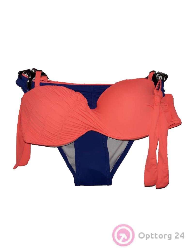 Купальник женский. Стиль современный. На завязках с чашками сине-оранжевый