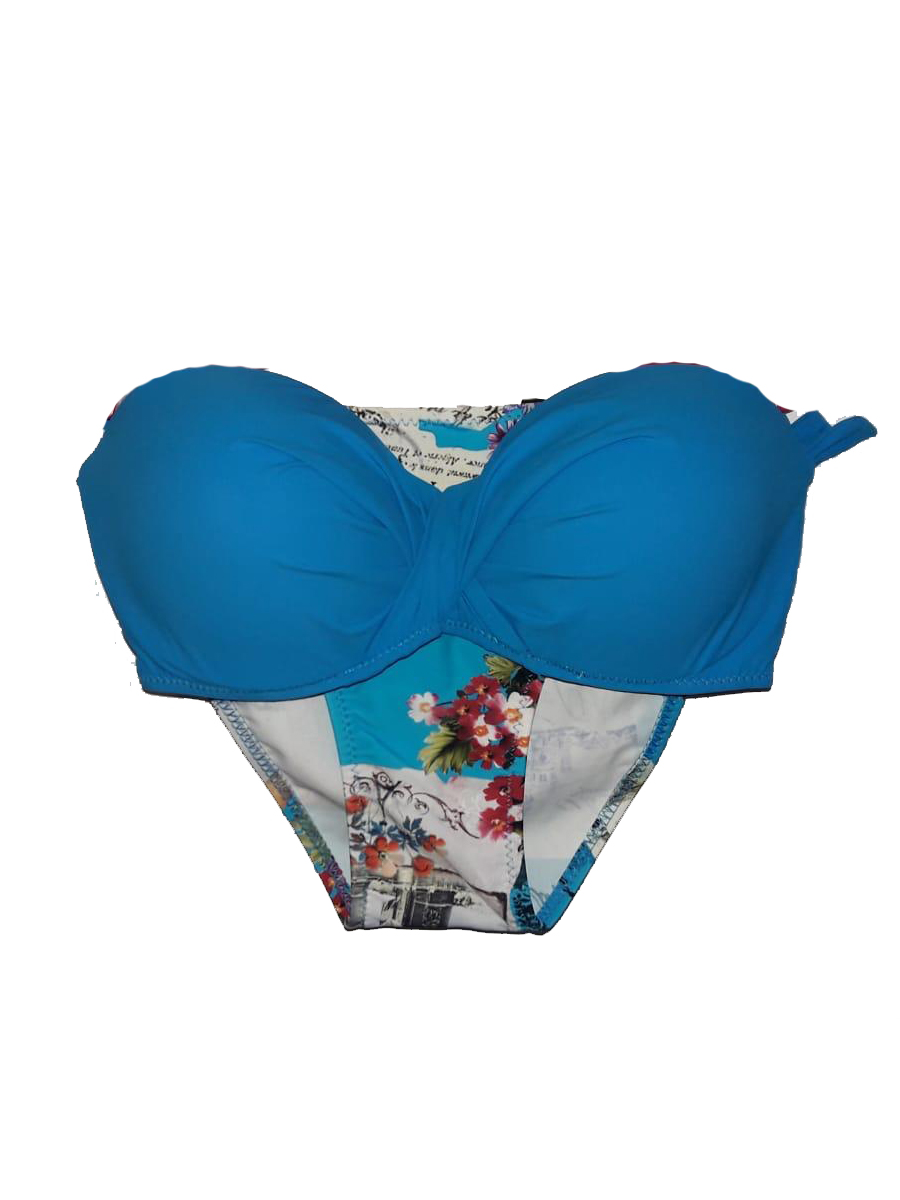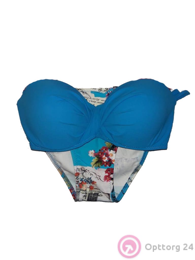 Купальник женский с чашками синий с ярким цветочным принтом оптом