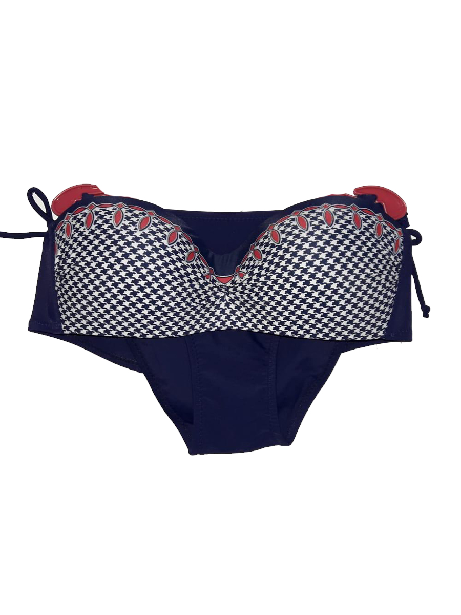 Купальник женский. Стиль современный. На завязках с чашками темно-синий с мелким принтом