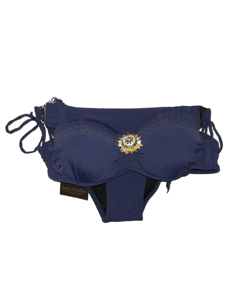 Купальник женский современного кроя. Раздельный. Форма чашками цвет темно-синий с позолоченной вставкой