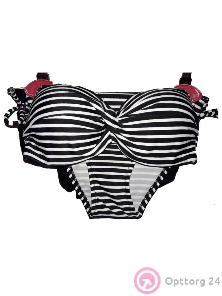 Купальник женский. Стиль современный. На завязках с чашками в черно-белую полоску