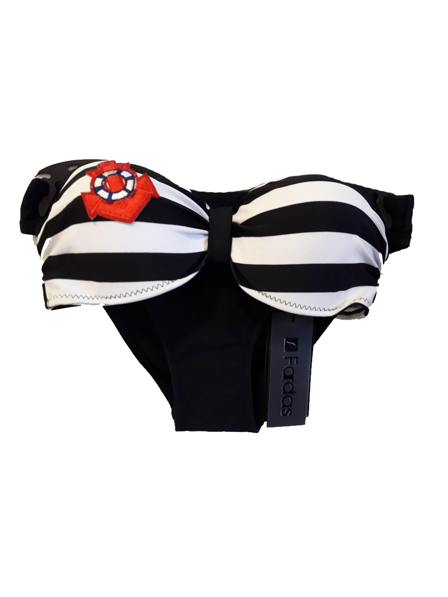 Купальник женский. Стиль современный. На завязках с чашками в черно-белую полоску с морской вставкой