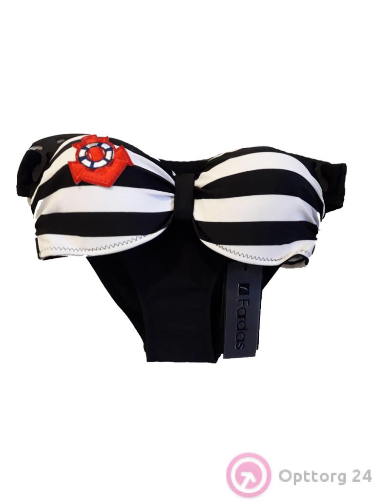 Купальник женский с чашками в черно-белую полоску с морской вставкой оптом