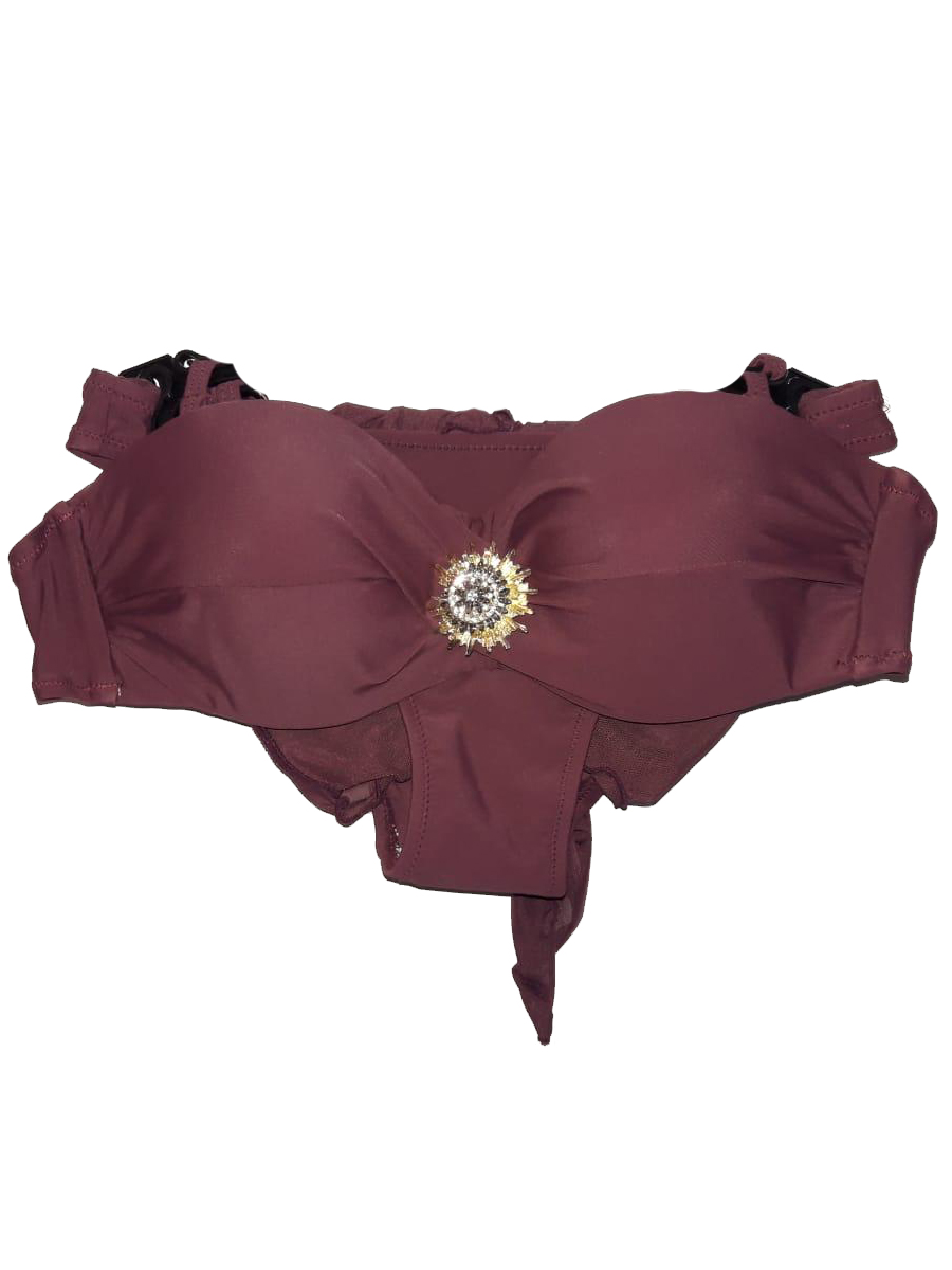 Купальник женский современного кроя. Раздельный. Форма чашками винного цвета с позолоченными вставками