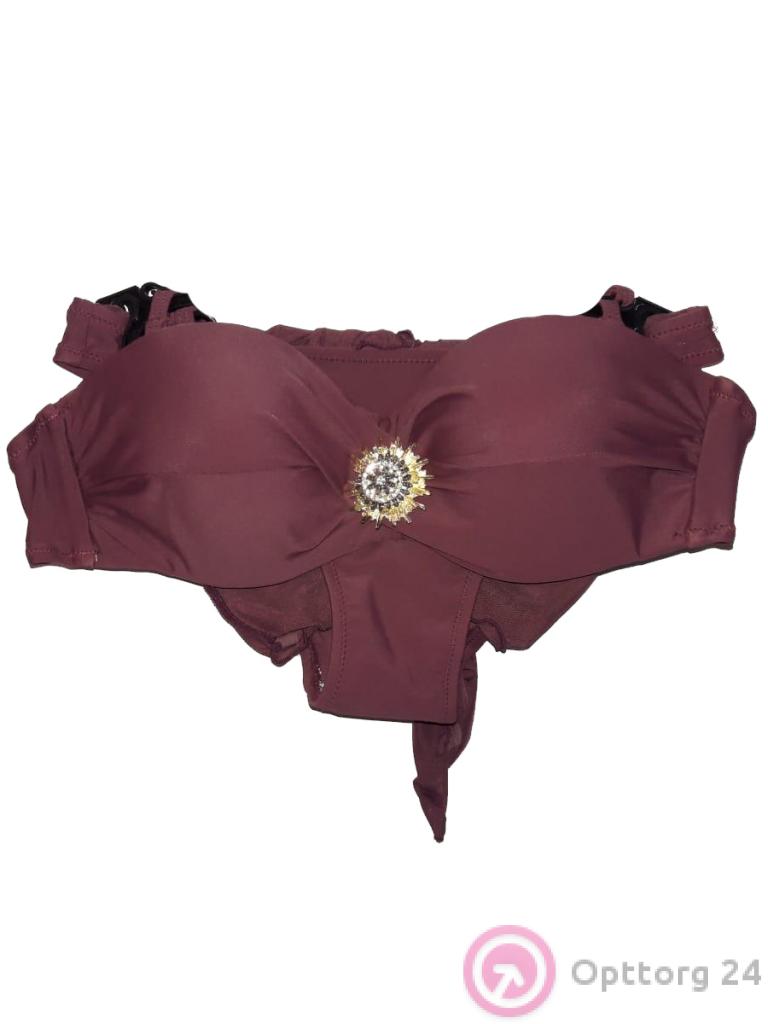 Купальник женский с чашками винного цвета с позолоченными вставками оптом