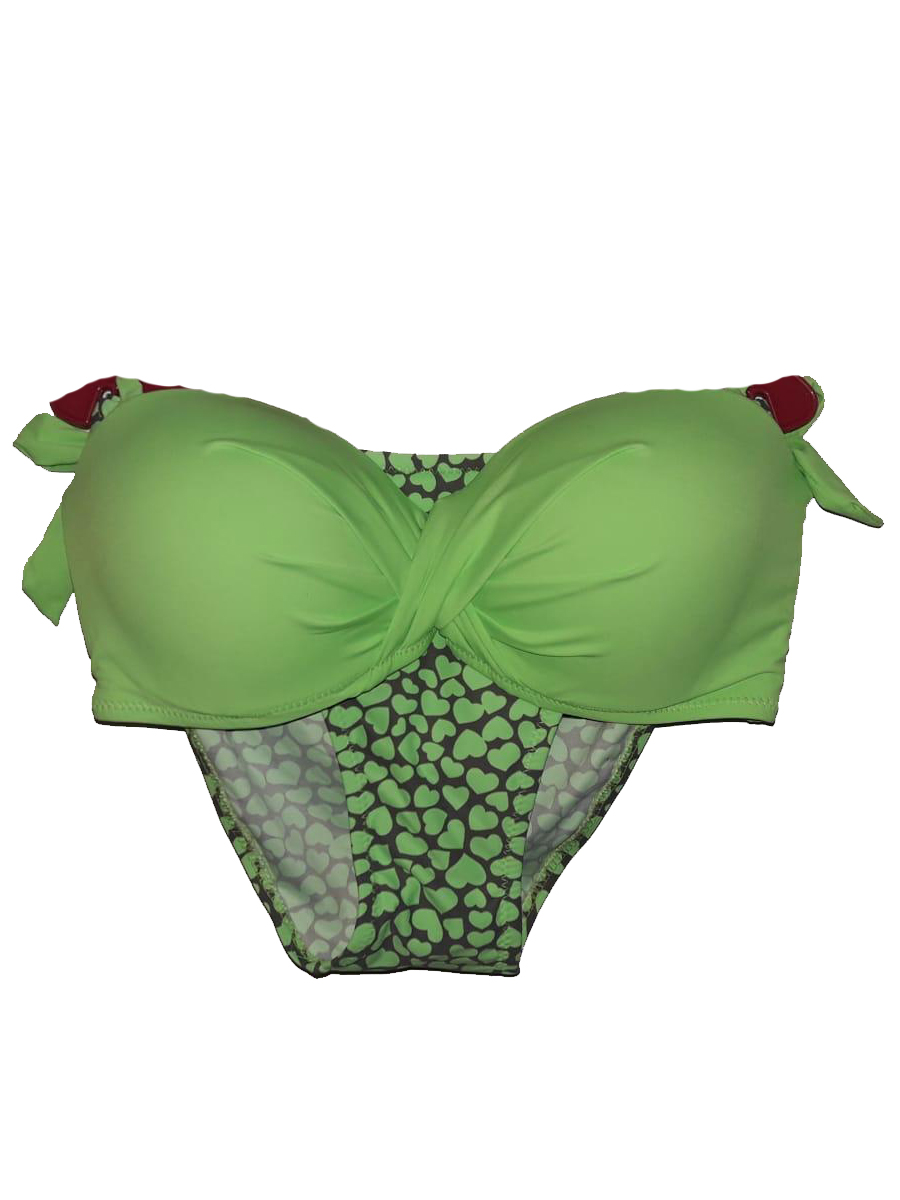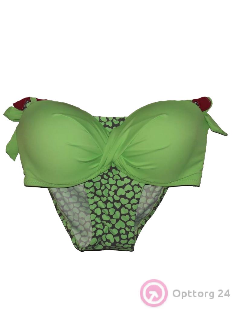 Купальник женский. Стиль современный. На завязках с чашками зеленый с сердечками