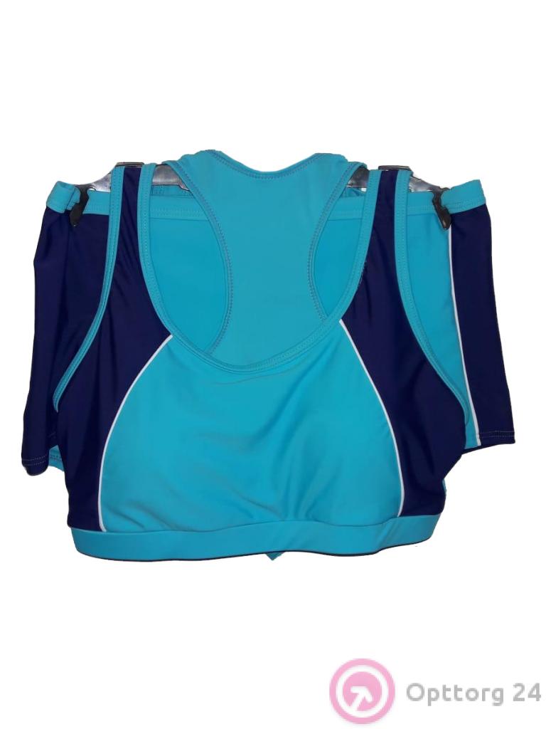 Купальник женский спортивный раздельный голубого и синего цветов оптом