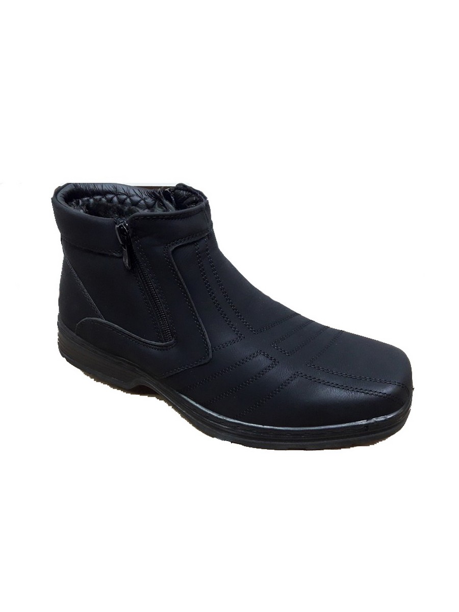 Кожаные мужские ботинки черного цвета с искусственным мехом.