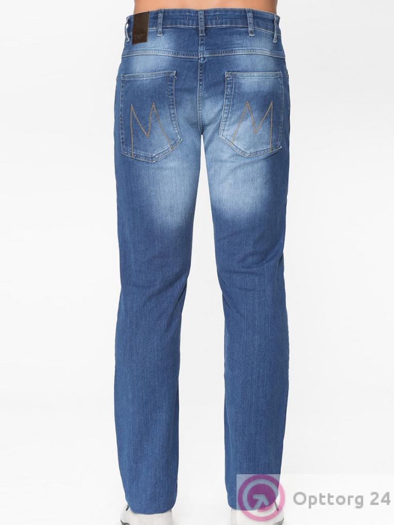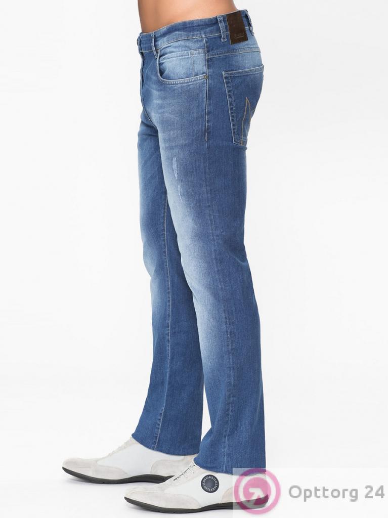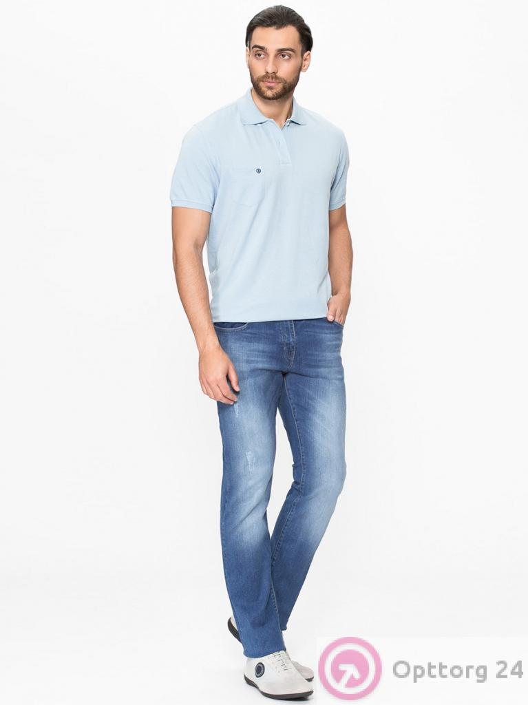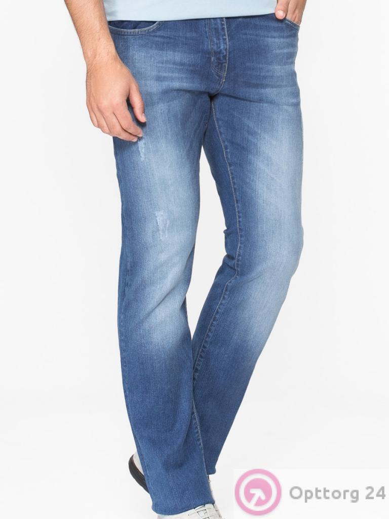 Мужские джинсы синего цвета с белыми потертостями и небольшими дырками оптом