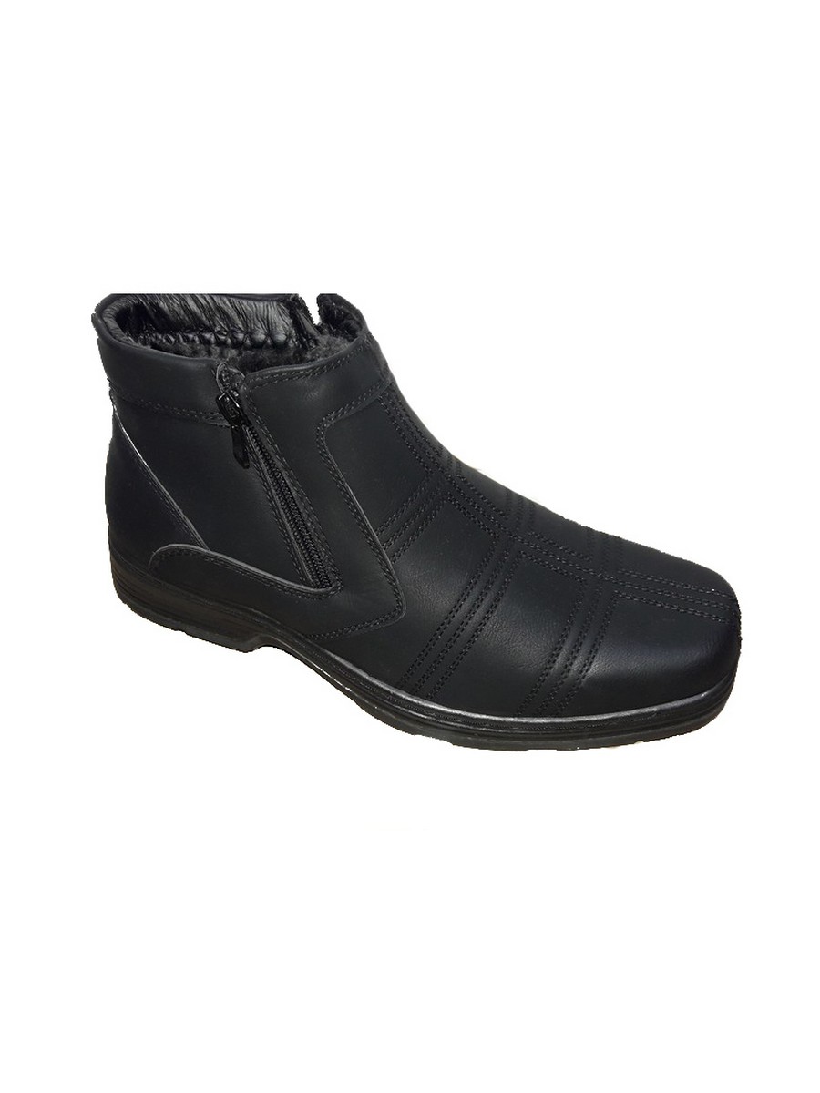 Кожаные ботинки черного цвета с искусственным мехом. Удобные и теплые.