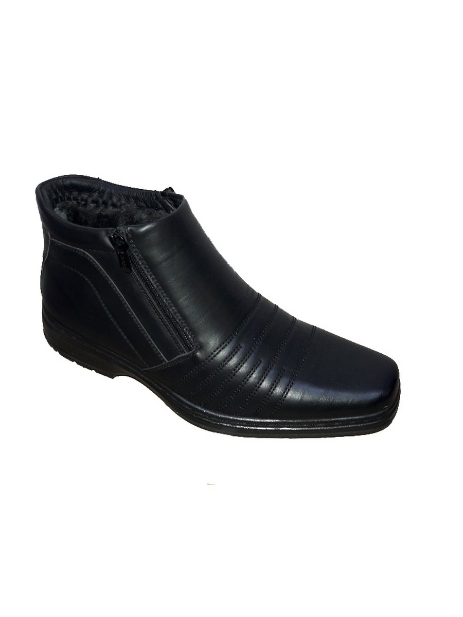 Мужские кожаные черные ботинки с искусственным мехом. Имеют практичную подошву.