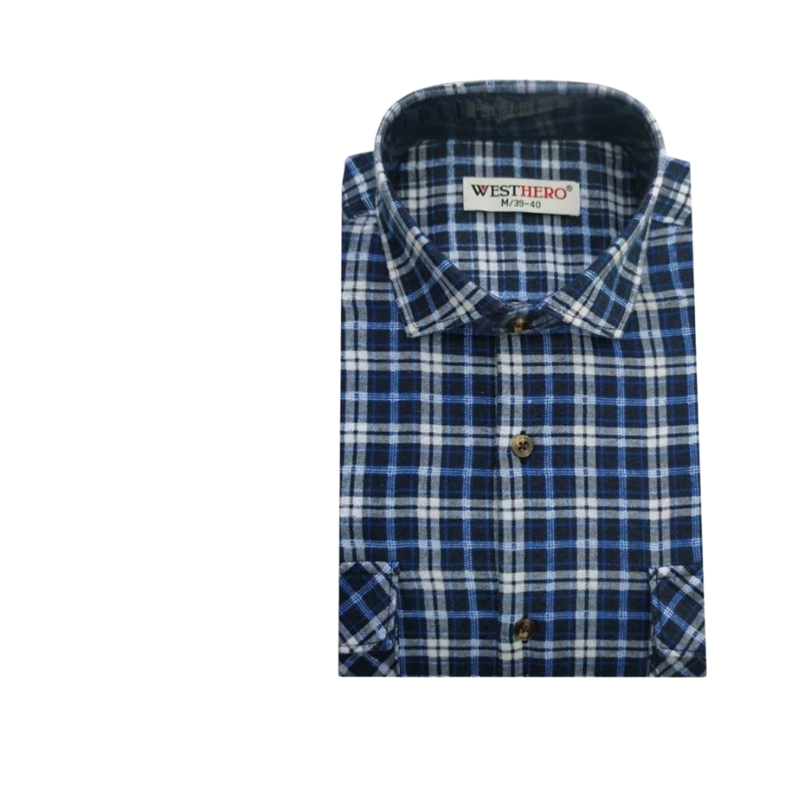 Фланелевая мужская рубашка в мелкую сине-белую клетку.Данная модель подойдет как к брюкам так и джинсам. Рубашка мягкая, приятная к телу. Имеется два нагрудный карман.