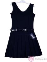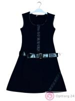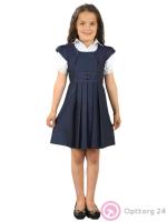 Сарафан школьный для девочки с поясом тёмно-синего цвета