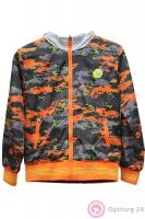 Куртка для мальчика демисезонная черная с оранжевым камуфляжным принтом