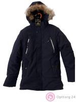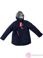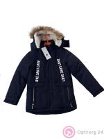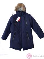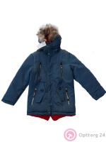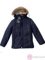 Зимний пуховик для мальчика синего цвета с капюшоном