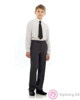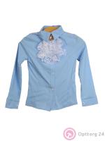 Блузка для девочки школьная голубого цвета с жабо и брошью