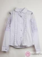 Блузка для девочки школьная белая с прозрачным кружевом на руках