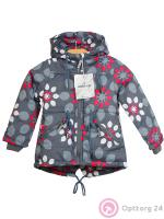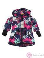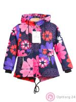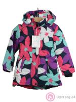Куртка детская с яркими цветами темного-синего цвета для девочки черным рукавом
