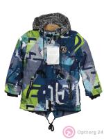 Куртка детская с яркими фигурками для мальчика цвет темный вставки яркие