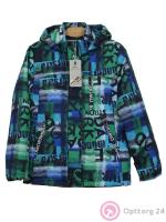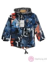 Куртка детская для мальчика темная с ярким принтом и капюшоном