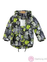 Куртка детская серого цвета с принтом ярко-салатовым для мальчика
