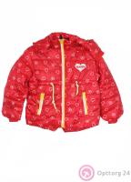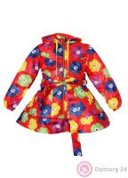 Плащ для девочки с подкладкой на синтепоне красный с цветами