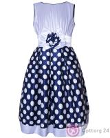 Праздничное платье " Елена" синего цвета в горошек.