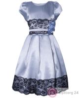 Детское платье "Гламур" голубое с черным гипюром