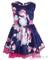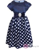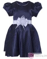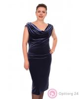 Платье тёмно-синего цвета с украшением на груди.