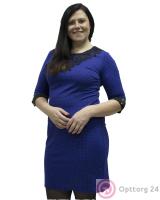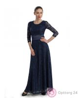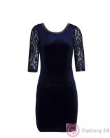 Платье женское с сетчатыми вставками и кружевом синее