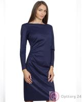 Асимметричное прямое платье тёмно-синего цвета.