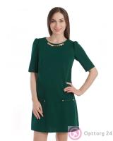 Зеленое платье с декоративным украшением