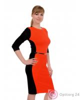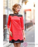 Классического покроя красное платье с чёрными вставками