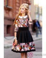 Платье женское чёрное с цветочными вставками