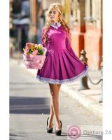 Платье женское с белой кружевной окантовкой сиреневое