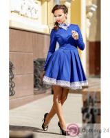 Платье женское с белой кружевной окантовкой синее